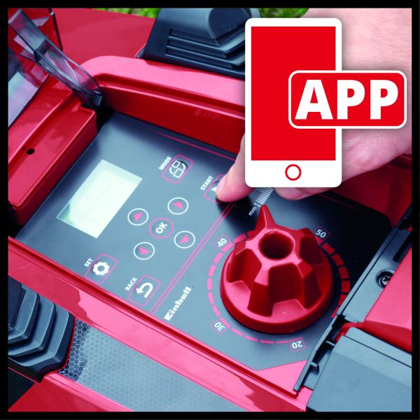 The FREELEXO CAM PLUS can be used via WiFi with the Einhell Connect app or via an LCD display with an intuitive keypad.